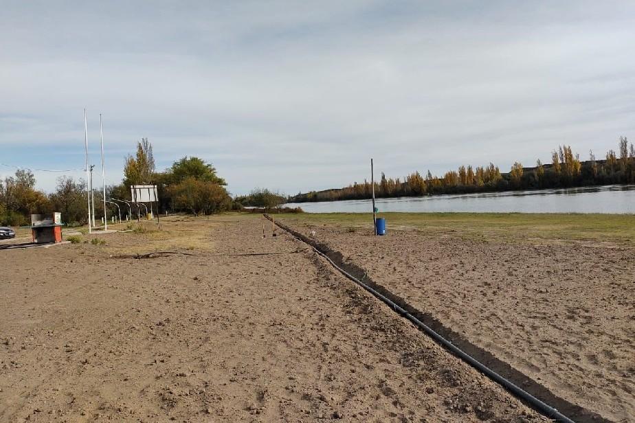 El Departamento Provincial de Aguas (DPA) se encuentra ejecutando la obra de parquización con el agregado de suelo vegetal y siembra de cobertura herbácea en el área ribereña del río Negro, sobre el balneario público de San Javier.