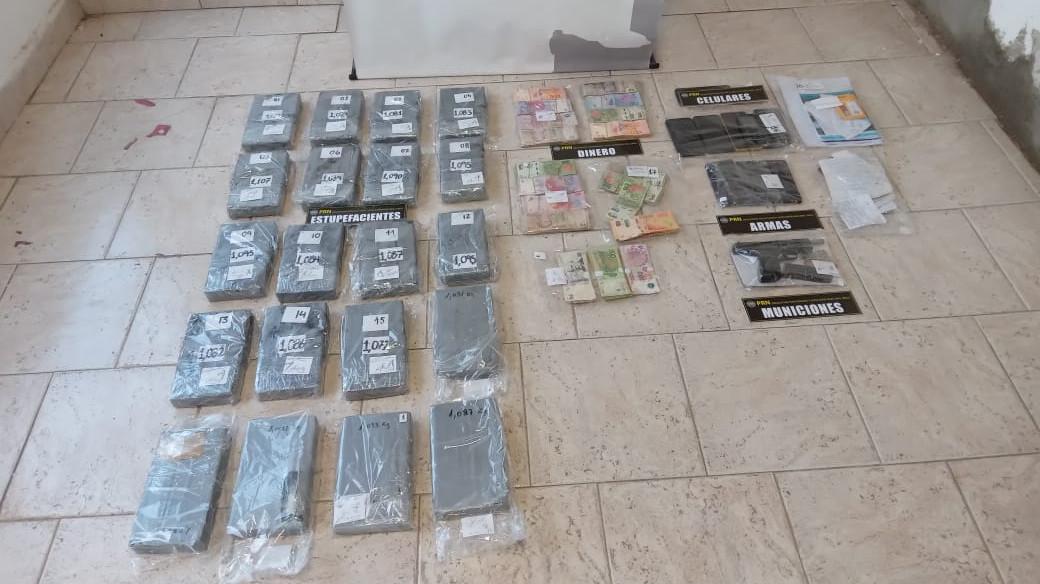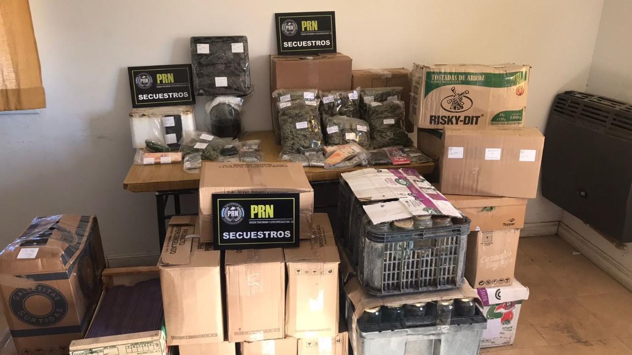 La Policía de Río Negro secuestró más de 23 kilos de cocaína, una cantidad que supera los 10 kilos de marihuana, cerca de 8 kilos de cogollos, ramas y 14 plantas de dicha sustancia, entre otros elementos, en General Roca.