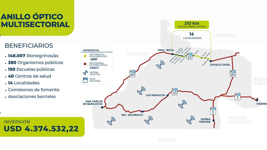La mayor obra de telecomunicaciones de la Provincia se puso en marcha, con la consulta pública que abordó los estudios de impacto social y ambiental para instalar 210 kilómetros de fibra óptica, que cerrarán "el anillo rionegrino" de conectividad entre Choele Choel y General Roca.