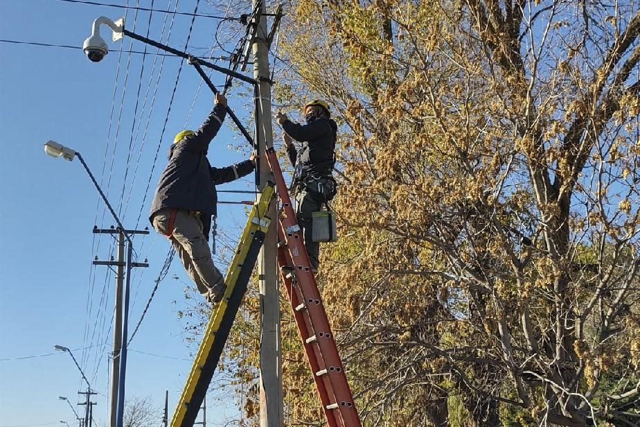Personal de ALTEC continúa con la instalación de cámaras de seguridad en la ciudad de General Roca. Este lunes se empezaron a realizar las tareas al respecto con diez cámaras de un total de 20 que el municipio de esa ciudad entregó en calidad de comodato.