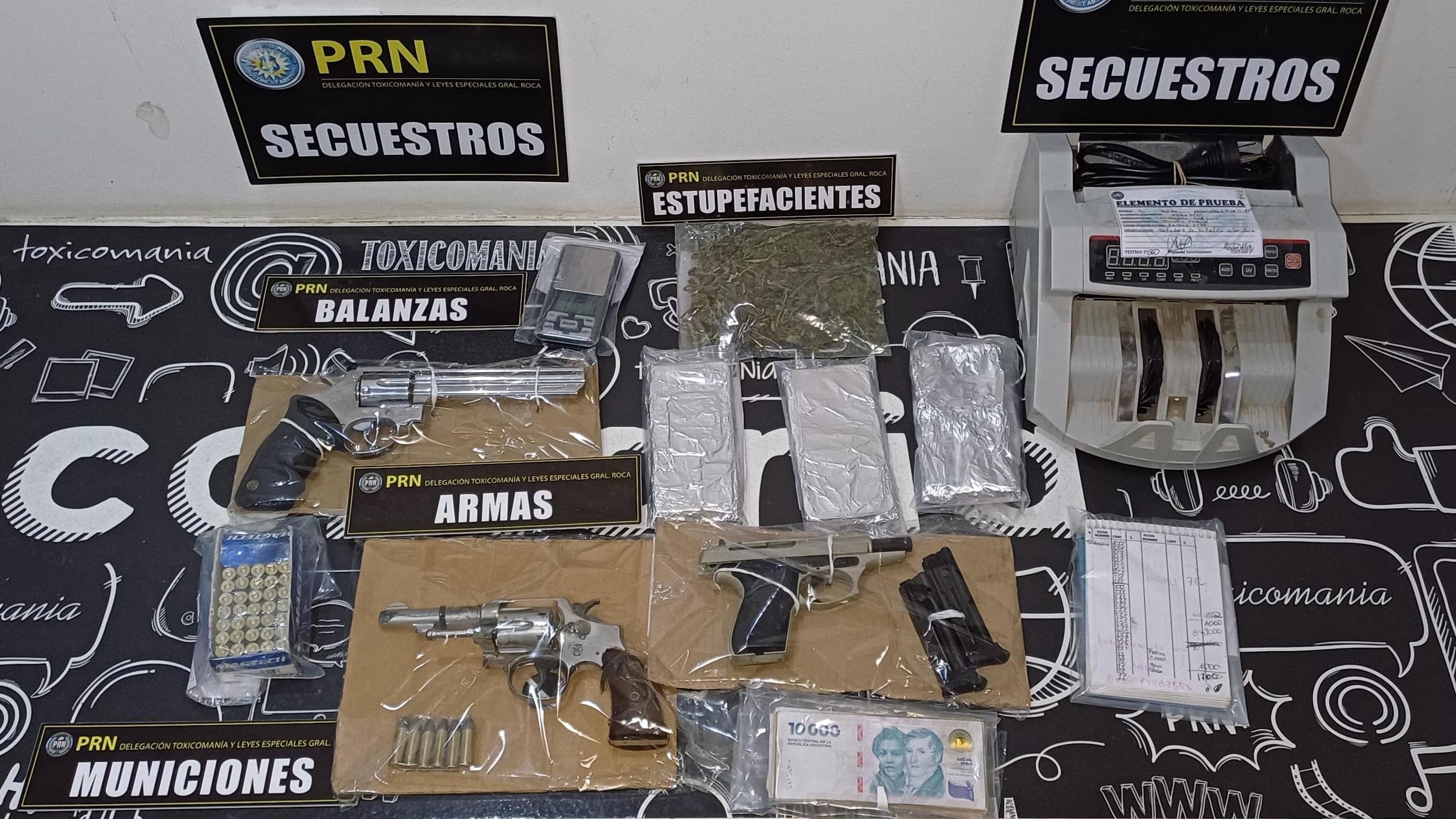A partir de una denuncia anónima al 0800-DROGAS de la Secretaría de Narcocriminalidad (SENAC), la Policía de Río Negro realizó múltiples allanamientos en General Roca. Los operativos permitieron el secuestro de marihuana, armas de fuego, teléfonos celulares, dinero en efectivo y otros elementos vinculados al narcomenudeo. Además, dos personas fueron imputadas por infracción a la Ley 23.737.
