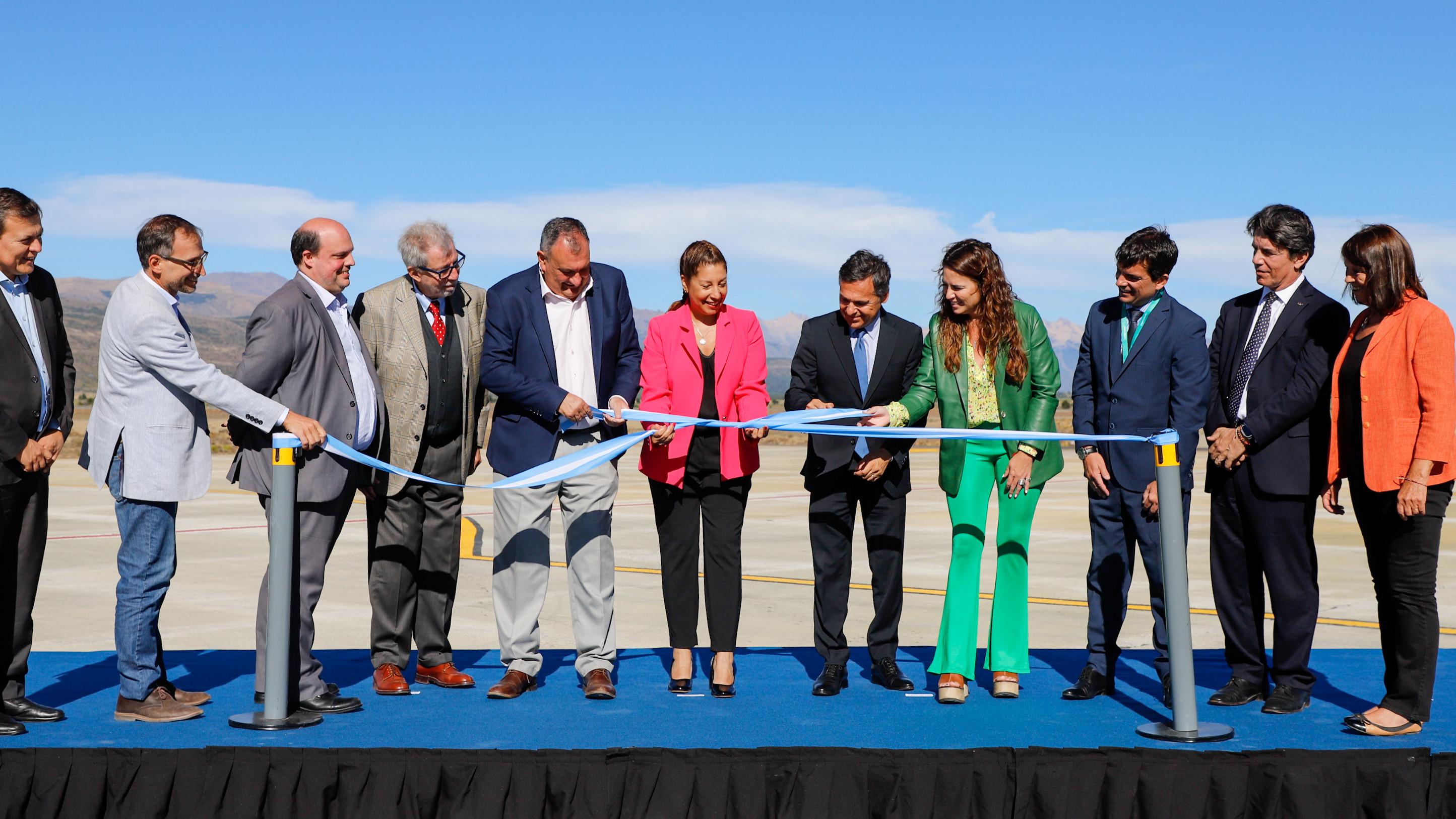 La Gobernadora Arabela Carreras y el ministro de Transporte de la Nación, Diego Giuliano, participaron hoy de la inauguración de la nueva plataforma remota y el taller de mantenimiento Intercargo del Aeropuerto Internacional de Bariloche, que permitirán ampliar el espacio de estacionamiento y atraque de aeronaves y mejorar la capacidad operativa.