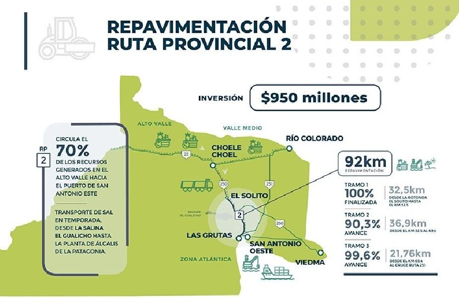 La puesta en valor de los accesos a Las Grutas, está enmarcada dentro del plan integral que se propuso la Provincia con respecto a la Ruta Provincial Nº2, que tiene que ver con la recomposición y recuperación en la parte entre El Solito y San Antonio Oeste, sumado a la repavimentación de las entradas al balneario.