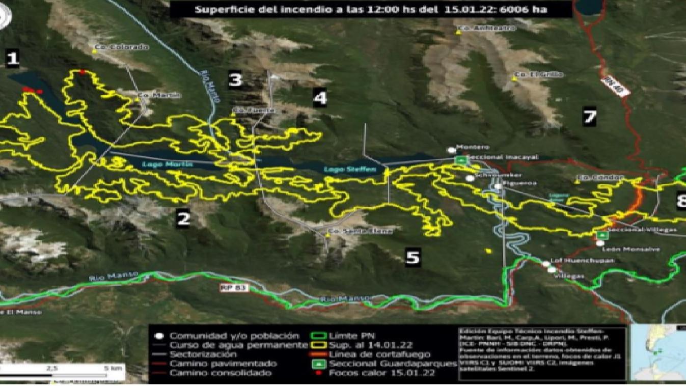 El Comité de Emergencia Regional constituido en el marco del incendio que el 7 de diciembre se inició en la zona del lago Martin, emitió este jueves a las 20 horas, un nuevo reporte de situación.