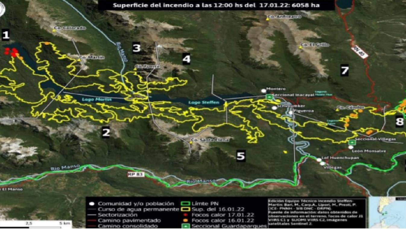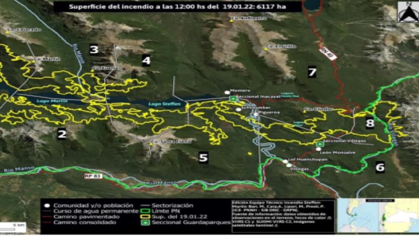 Se dio a conocer un nuevo reporte de situación por parte del Comité de Emergencia Regional, respecto al incendio que el 7 de diciembre se inició en la zona de lago Martin, tras la caída de un rayo.