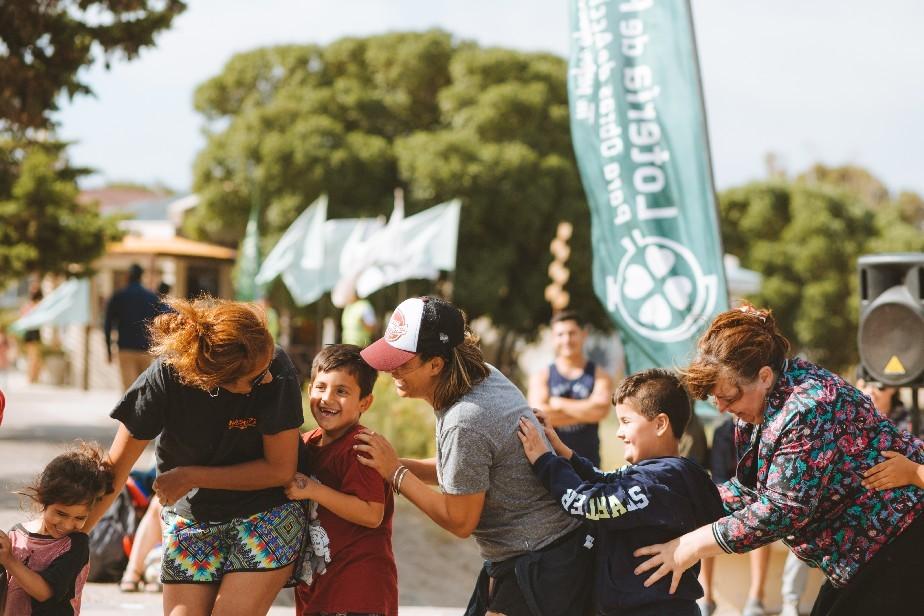 El sábado 4 de enero las familias que paseaban en El cóndor pudieron disfrutar de una tarde de juegos en la rotonda principal de la villa balnearia organizada por Lotería de Río Negro.