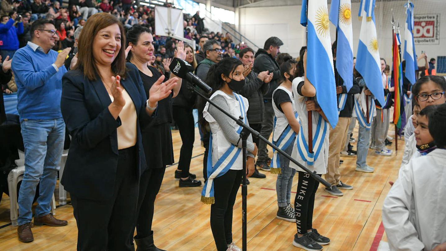 Desde el pasado viernes y por una semana, 10.340 estudiantes que asisten a cuarto grado en 320 escuelas primarias realizarán la tradicional Promesa a la Bandera. La Gobernadora Arabela Carreras participó hoy del acto organizado en Cipolletti.