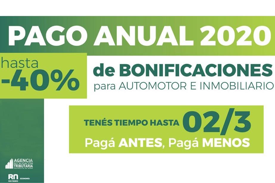 A la fecha, ya se realizaron 46.640 pagos anuales de Impuesto Automotor e Inmobiliario, 5.000 más que en 2019. El 30 de enero opera el primer vencimiento del Inmobiliario, aunque continua vigente hasta el 2 de marzo.