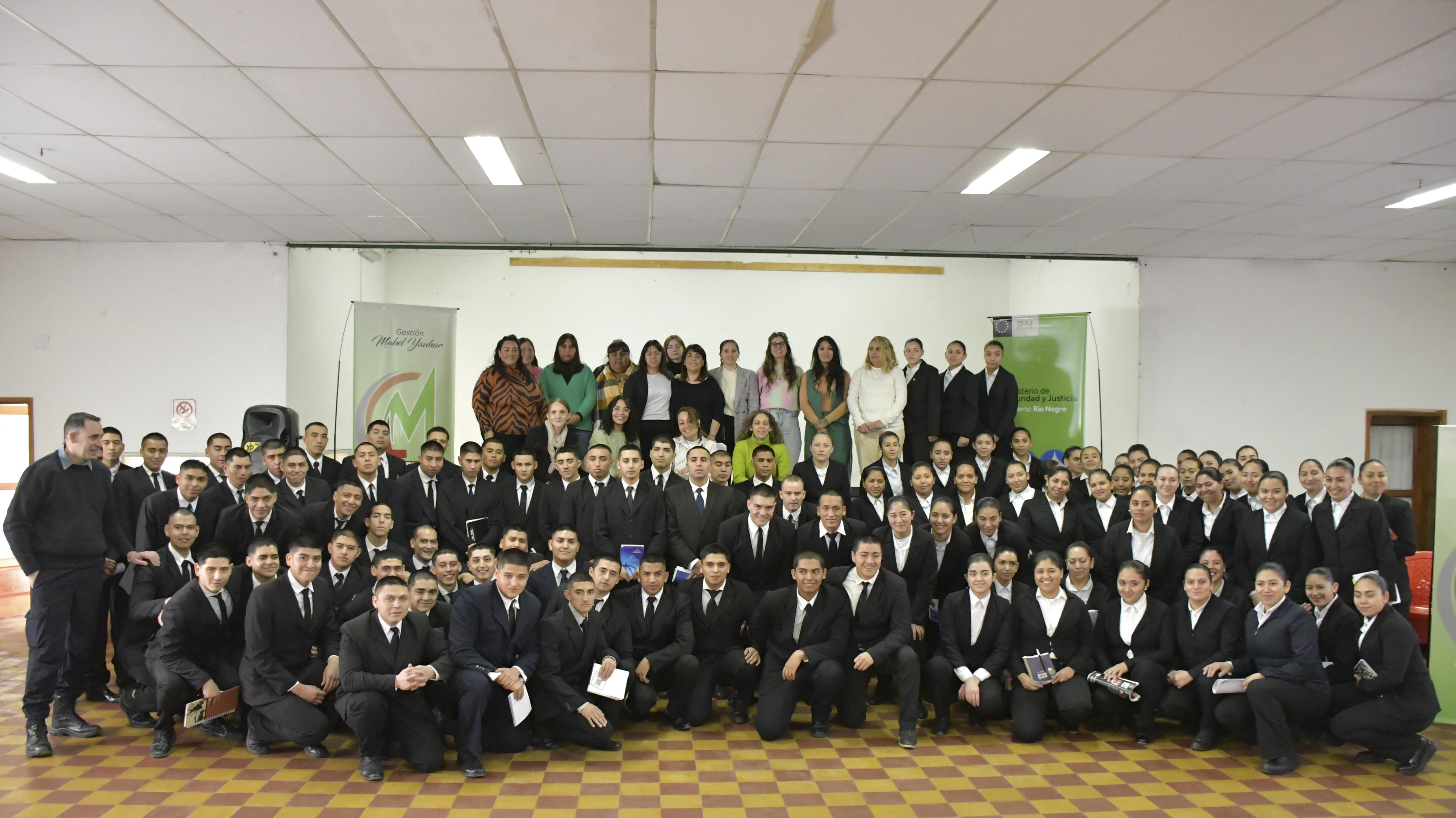 En el marco de las políticas provinciales de prevención de las violencias, el Ministerio de Seguridad y Justicia de Río Negro, a través del Programa Masculinidad y Violencia de la Subsecretaría de Articulación de Políticas, desarrolló la segunda capacitación de sensibilización destinada a estudiantes del 1° año de la Tecnicatura Superior en Seguridad Pública de la Escuela de Cadetes de la Policía de Río Negro, en Viedma. La jornada contó con la participación de 45 aspirantes a oficiales.
